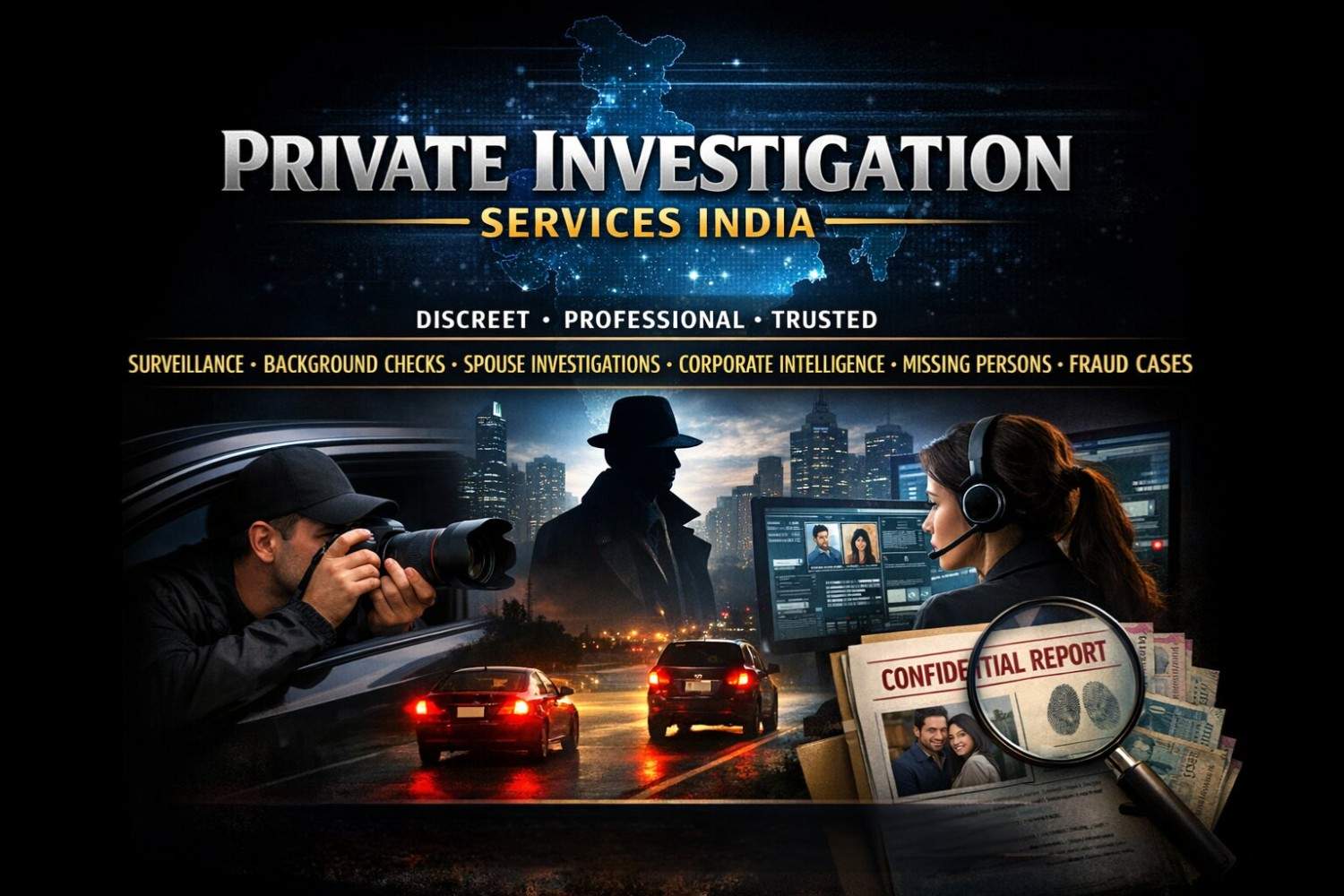 At All India Detective Agency Pvt. Ltd., we believe in delivering truth with trust, integrity, and complete confidentiality. Our team of skilled investigators uses advanced techniques and years of experience to ensure accurate, discreet, and reliable results. Whether for personal or corporate cases, we are committed to providing you with clear answers and peace of mind.