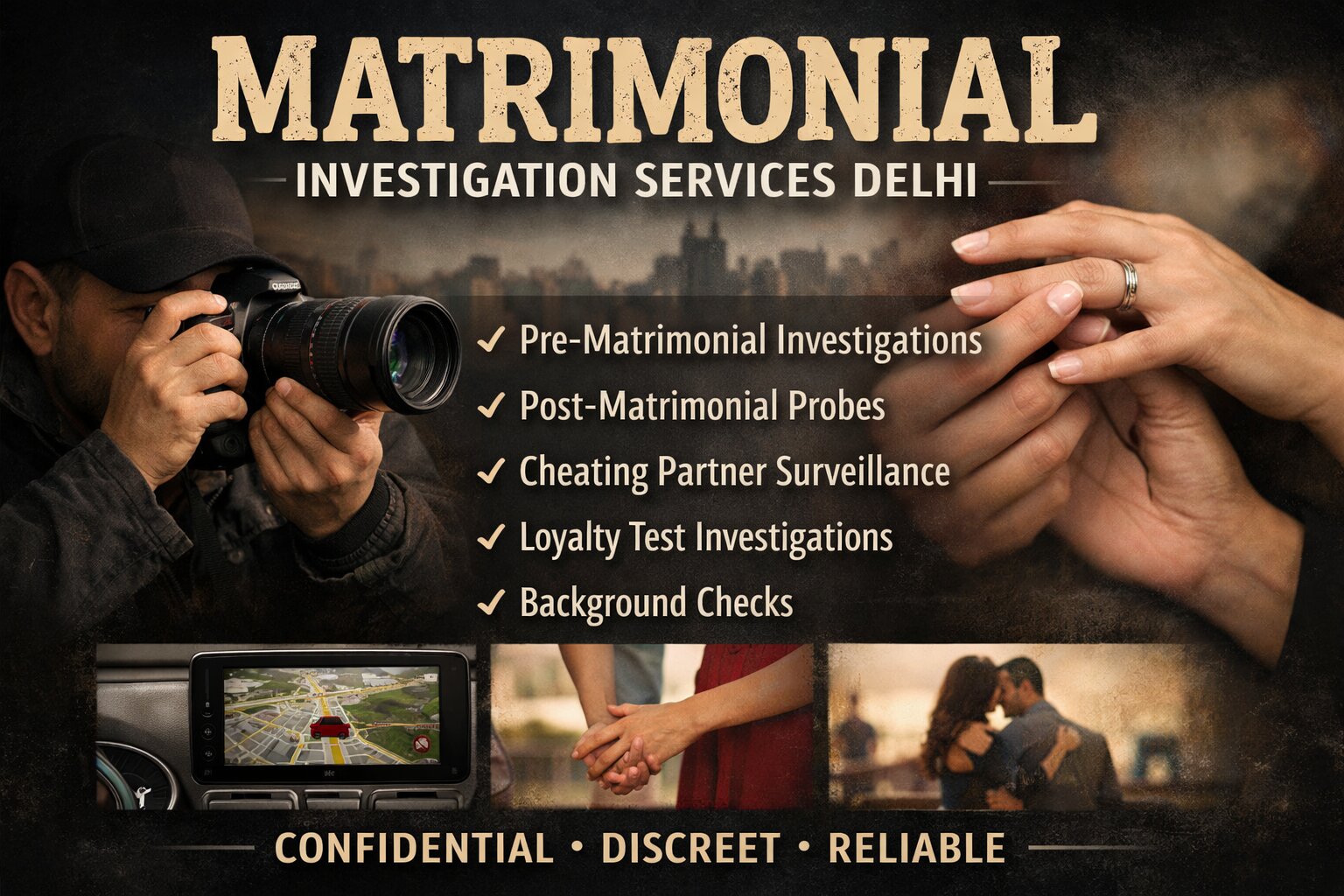 Matrimonial Investigation Services in Delhi help you verify your partner’s background, lifestyle, and personal details before or after marriage. Professional detectives ensure accurate, confidential, and reliable information to support safe and informed decisions.